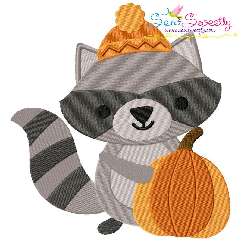 Cute Fall Raccoon Machine Embroidery Design Pattern For Fall And Thanksgiving.