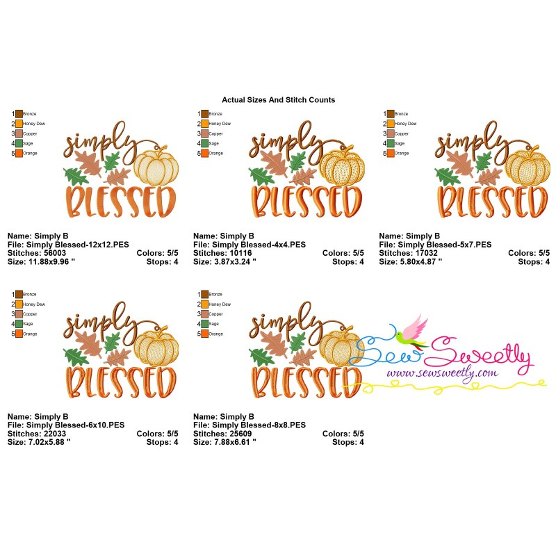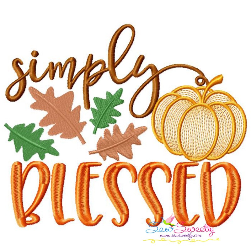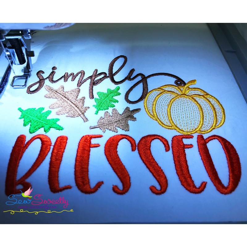 Simply Blessed-2 Lettering Machine Embroidery Design Pattern For Fall And Thanksgiving.