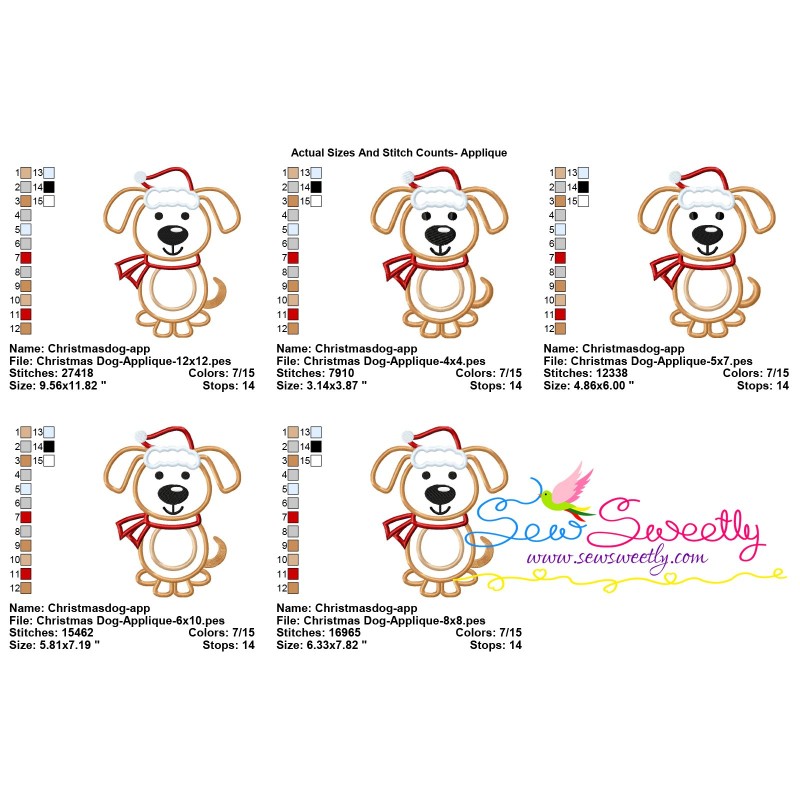Christmas Dog Machine Embroidery Applique Design Pattern For Christmas Animal Projects.