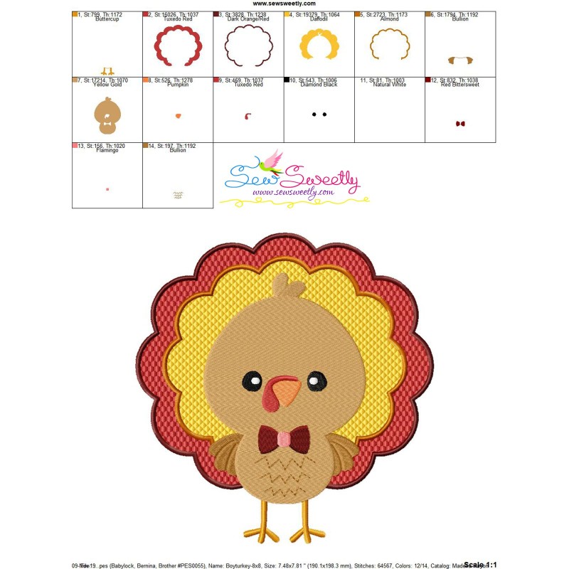 Boy Turkey Machine Embroidery Design Pattern For Fall And Thanksgiving.