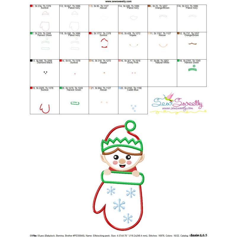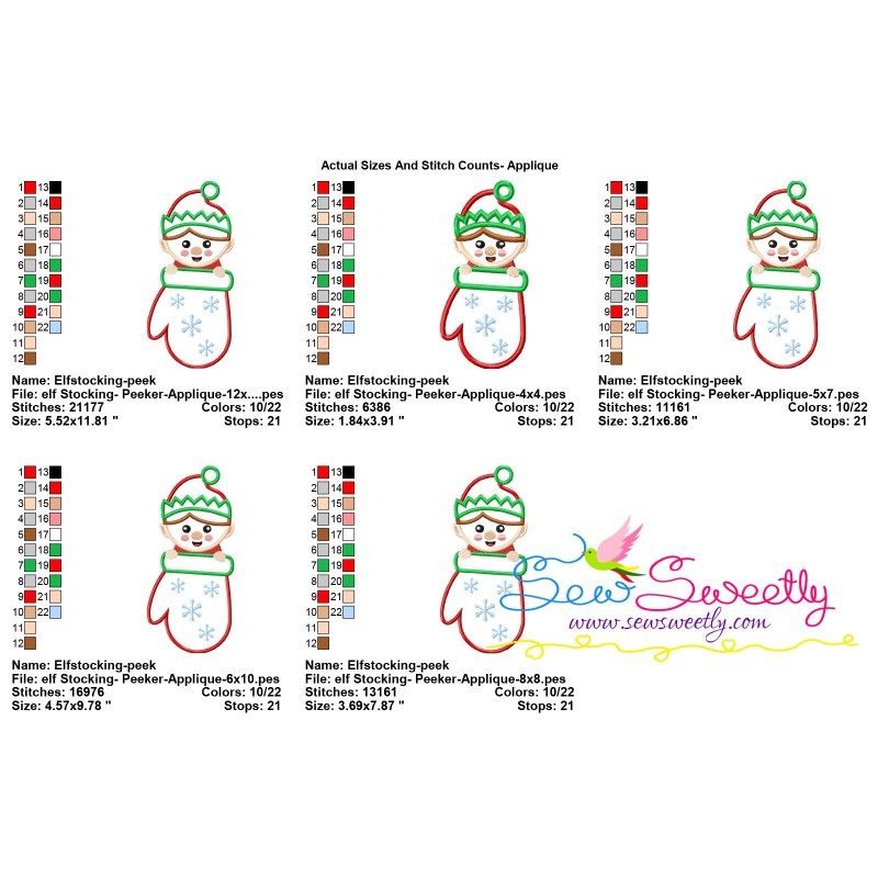 Elf Stocking- Peeker Machine Embroidery Applique Design Pattern For Christmas Projects.