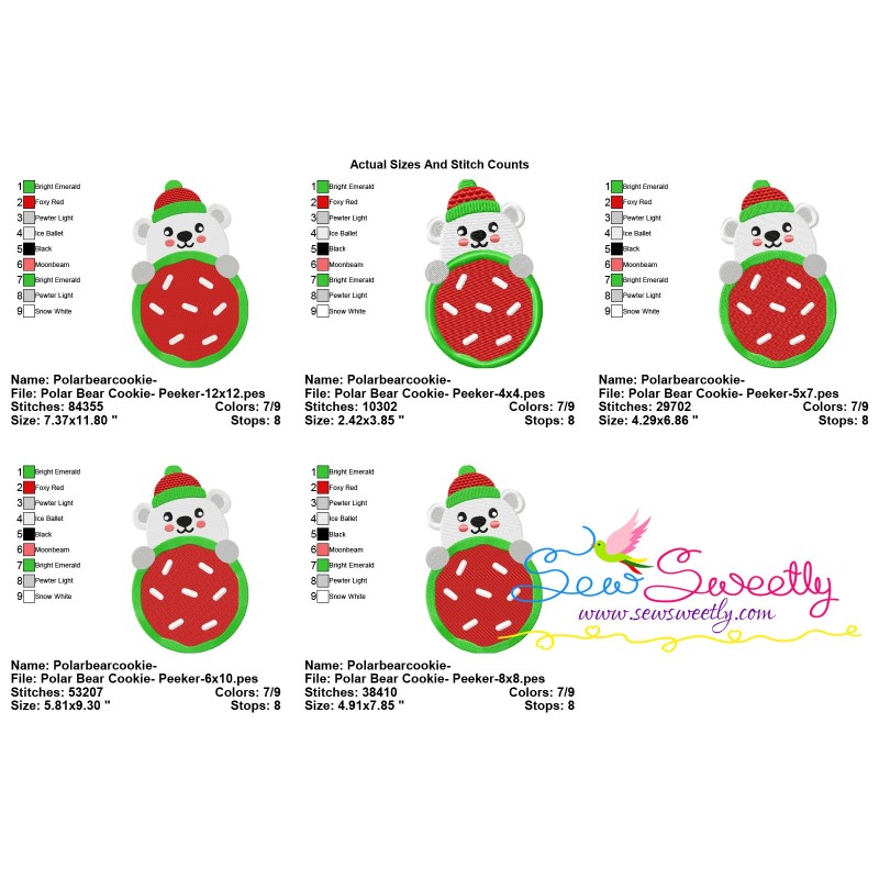 Peeking Polar Bear With Cookie Machine Embroidery Design Pattern For Christmas Projects.