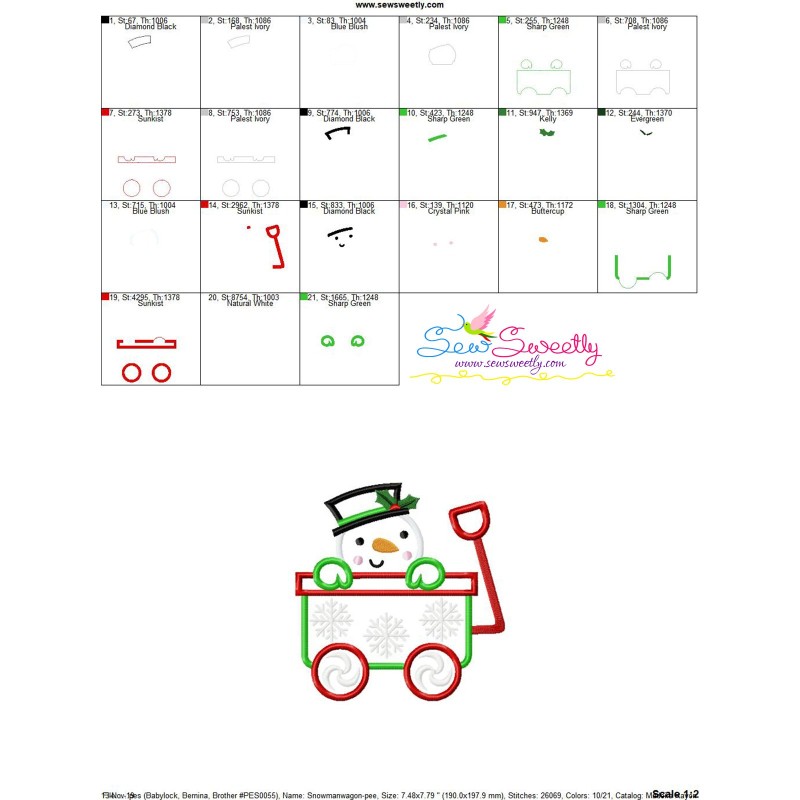 Snowman Wagon- Peeker Machine Embroidery Applique Design Pattern For Christmas Projects.