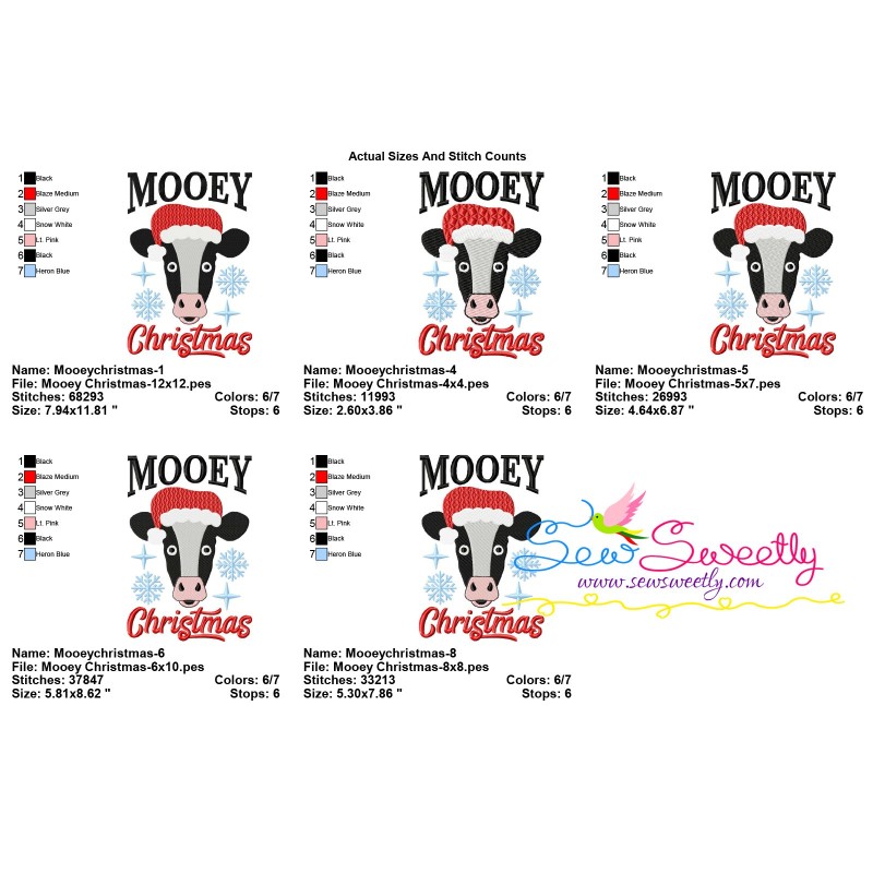 Mooey Christmas Cow Machine Embroidery Design Pattern For Christmas Projects.