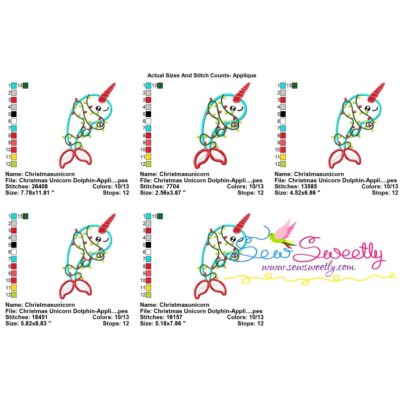 Christmas Narwhal Whale Machine Embroidery Applique Design Pattern For Christmas Projects.