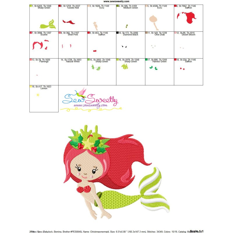 Christmas Mermaid-4 Embroidery Design Pattern-1