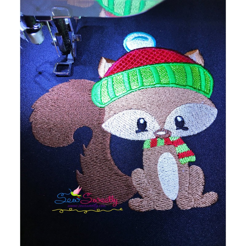 Woodland Christmas Squirrel Machine Embroidery Design Pattern For Christmas Projects.