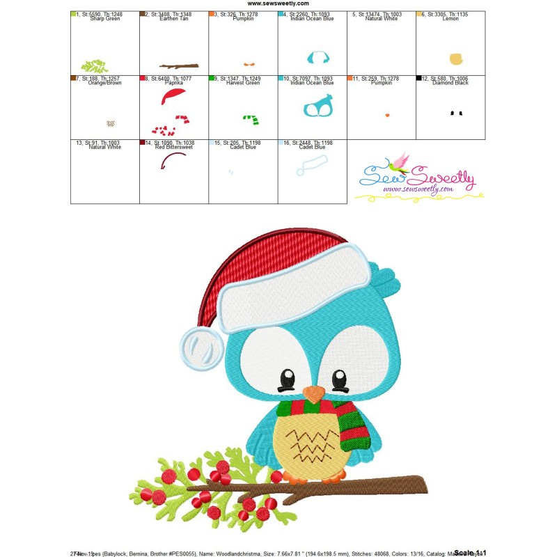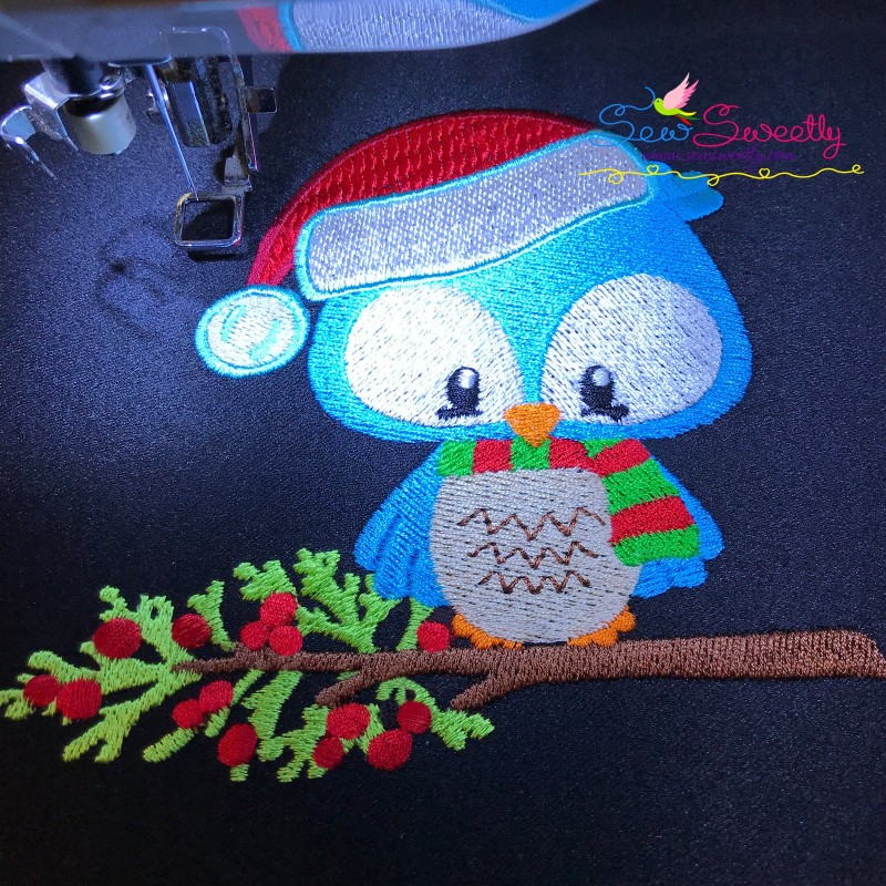 Woodland Christmas Owl Machine Embroidery Design Pattern For Christmas Projects.