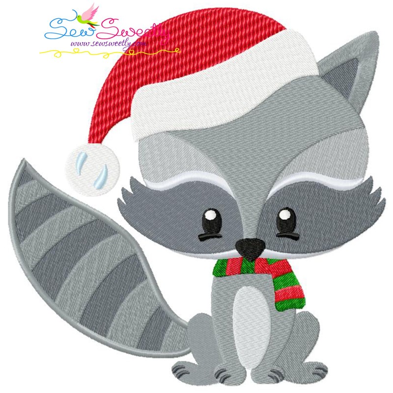 Woodland Christmas Raccoon Machine Embroidery Design Pattern For Christmas Projects.