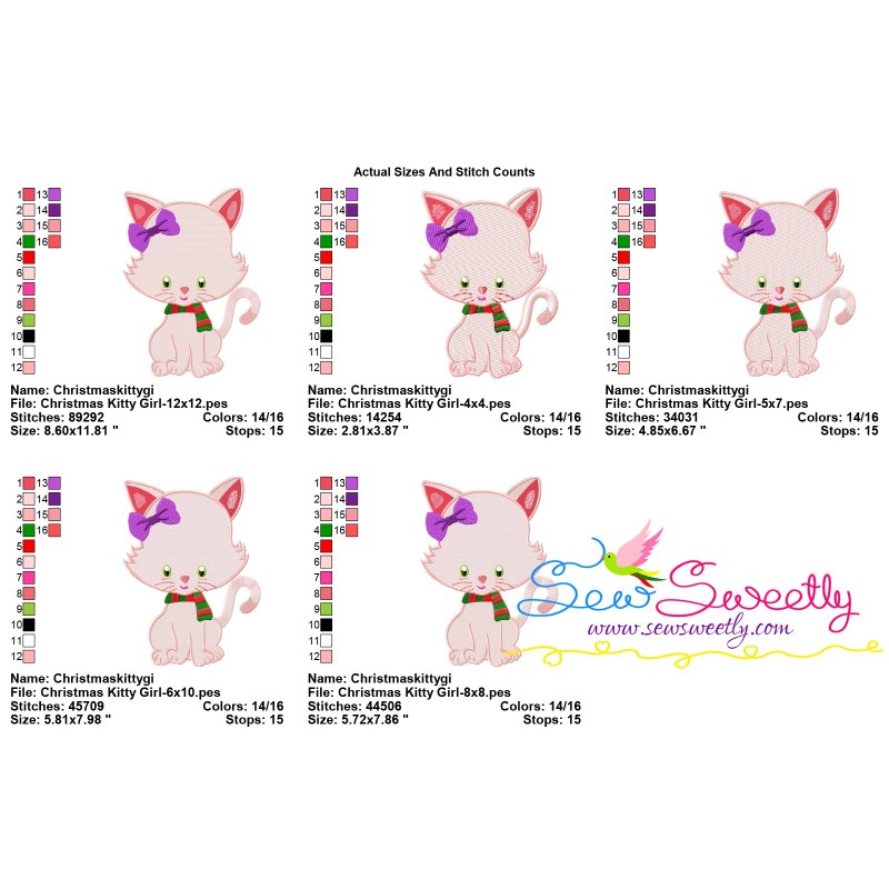 Christmas Kitty Girl Machine Embroidery Design Pattern For Christmas Projects.