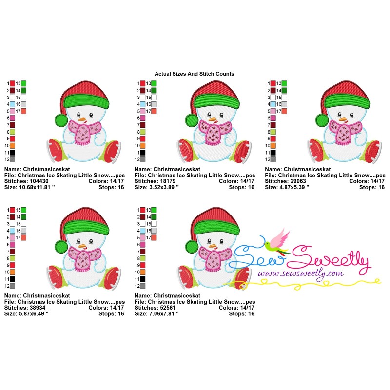 Christmas Ice Skating Little Snowman-4 Embroidery Design Pattern-1
