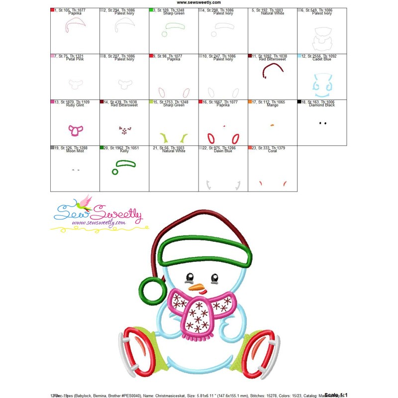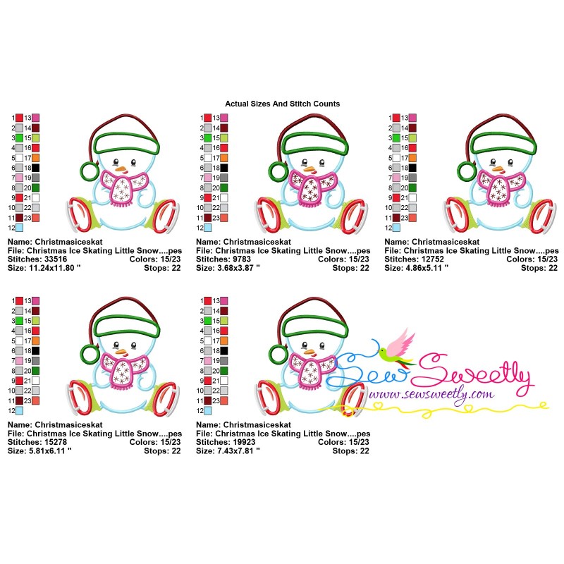 Christmas Ice Skating Little Snowman-4 Applique Design Pattern-1