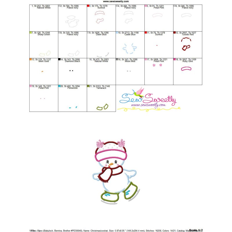 Christmas Ice Skating Little Snowman-1 Applique Design Pattern-3