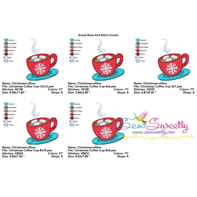 Christmas Coffee Cup Machine Embroidery Design Pattern For Christmas Projects.