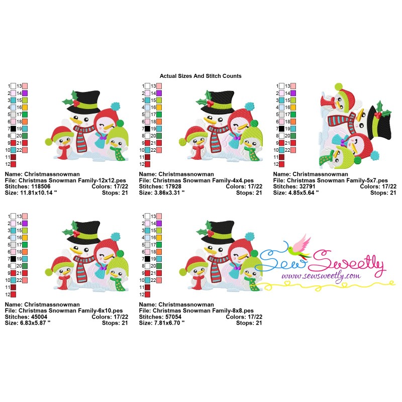 Christmas Snowman Family Machine Embroidery Design Pattern For Christmas Projects.