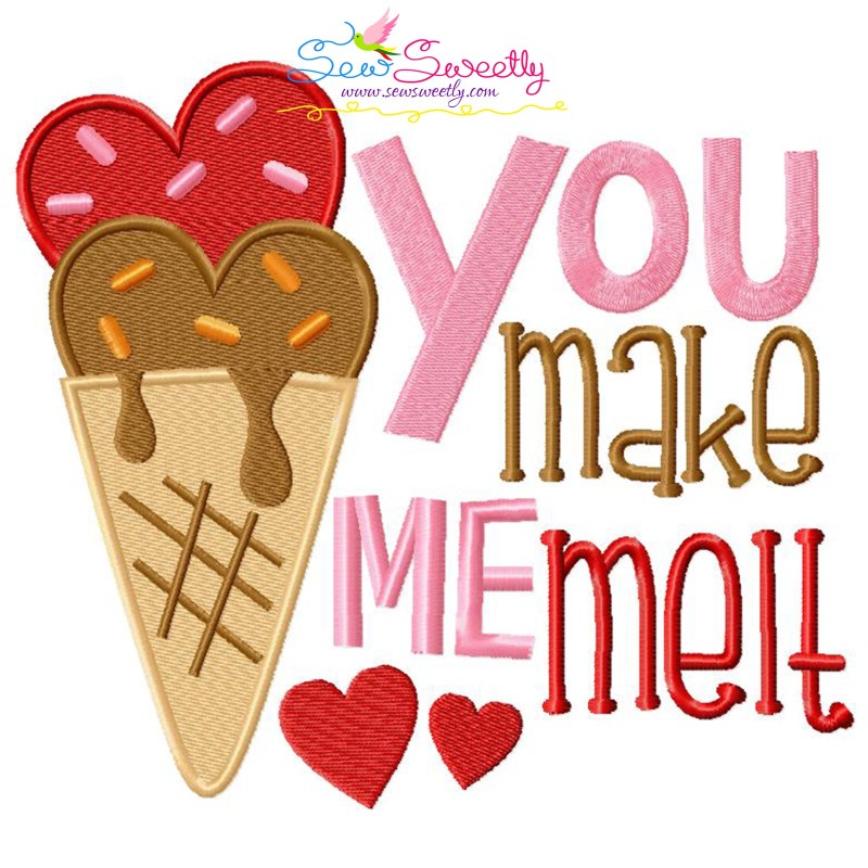 You Make Me Melt Ice Cream Cone Valentine Embroidery Design Pattern-1