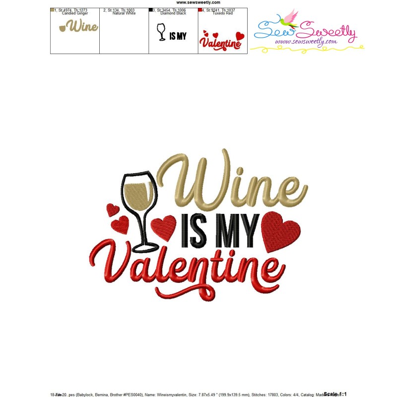 Wine Is My Valentine Lettering Embroidery Design Pattern-1