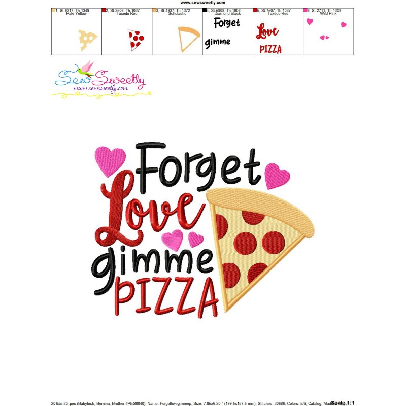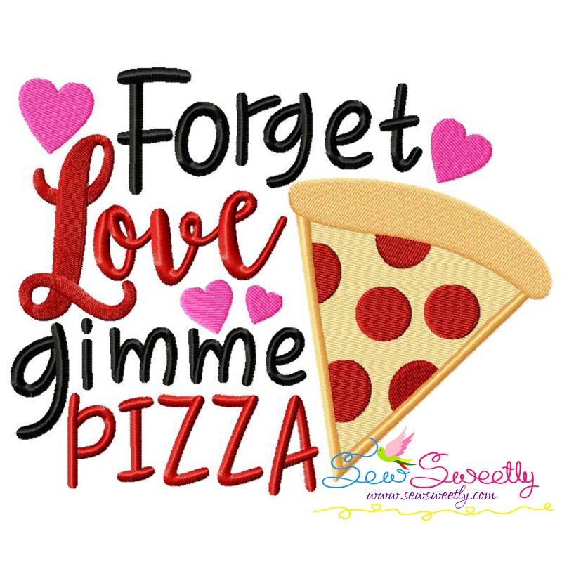 Forget Love Gimme Pizza Valentine Lettering Embroidery Design Pattern