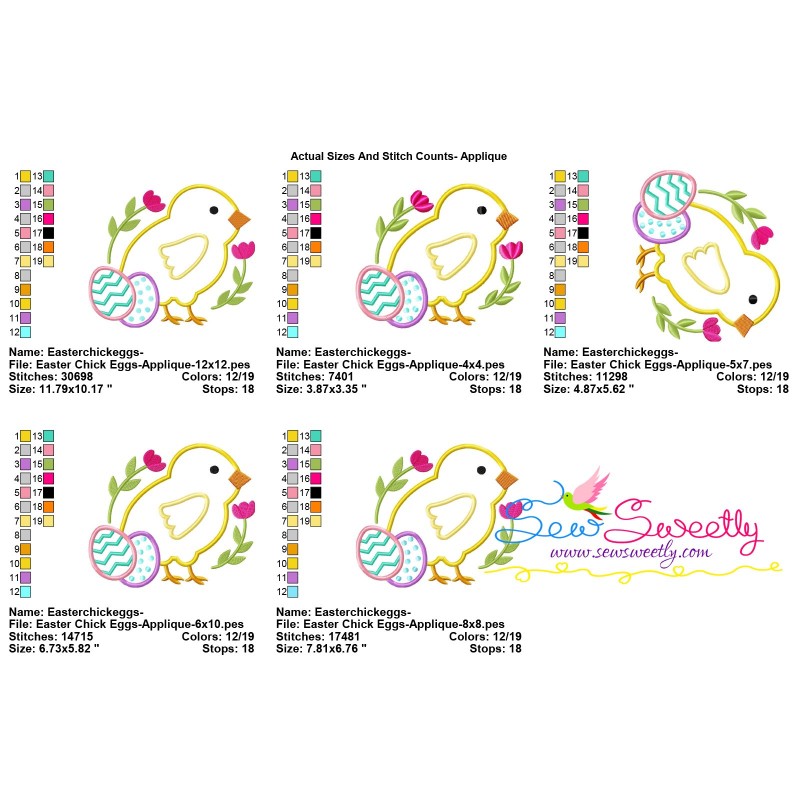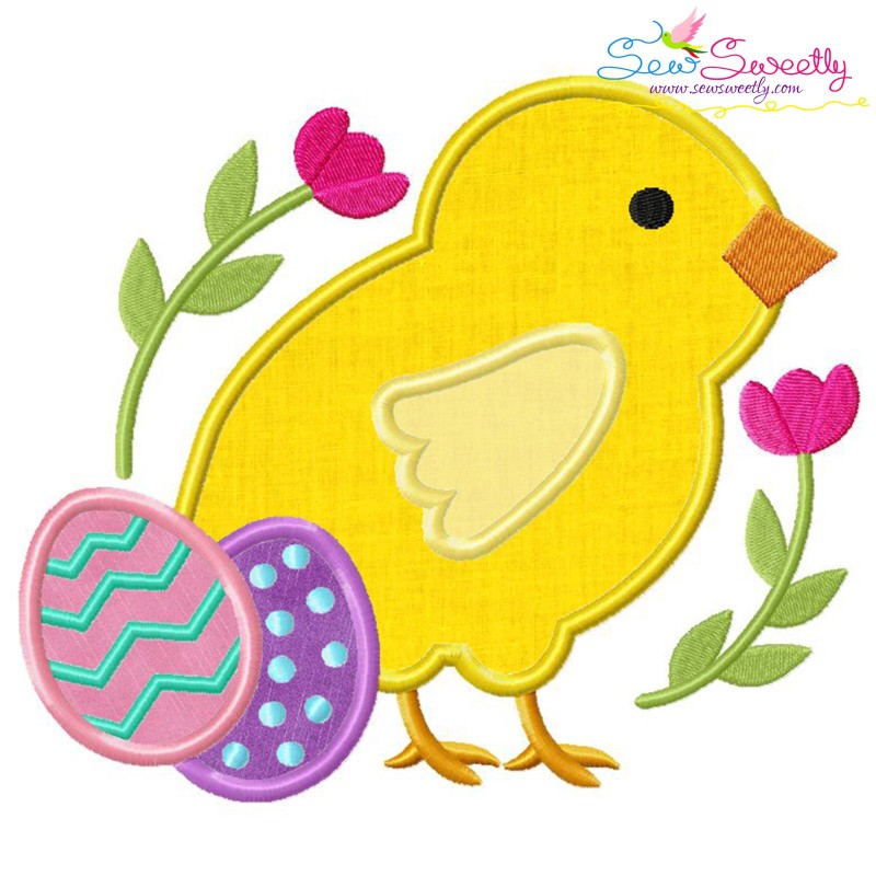 Easter Chick With Eggs Machine Embroidery Applique Design Pattern For Easter.