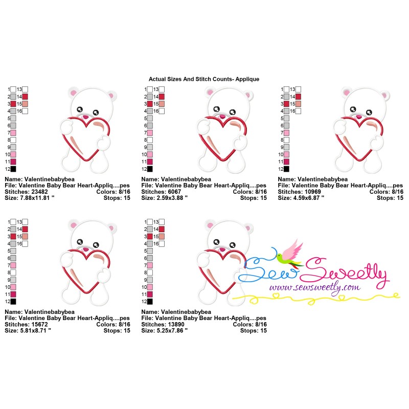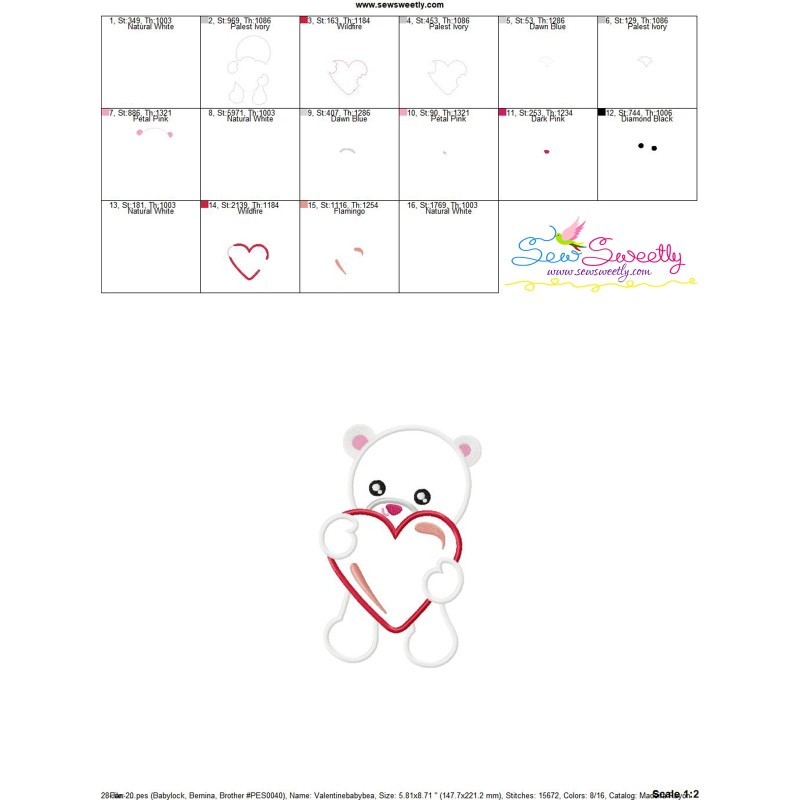 Valentine Baby Bear Heart Applique Design Pattern-3