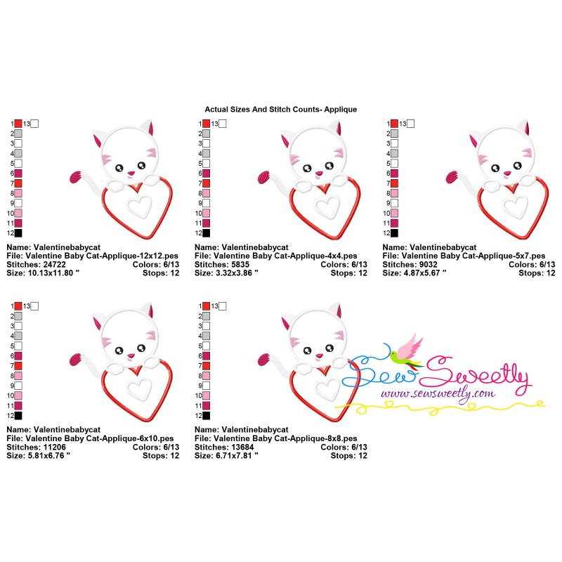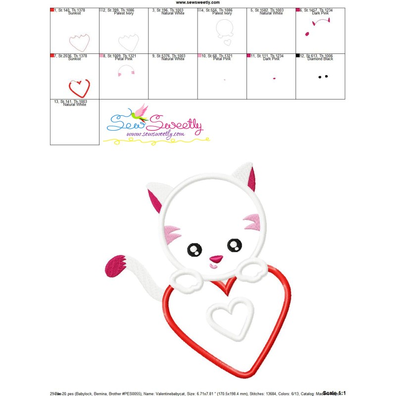 Valentine Baby Cat Heart Applique Design Pattern-1