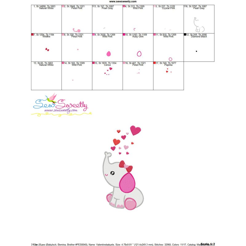 Valentine Elephant Baby Girl Embroidery Design Pattern