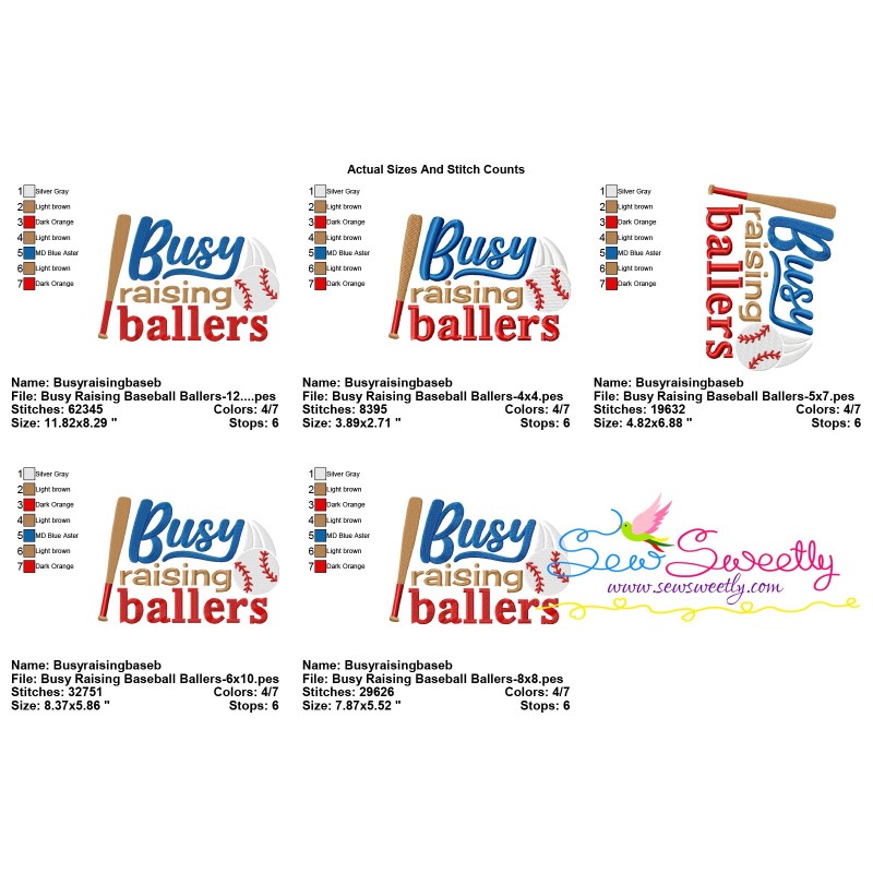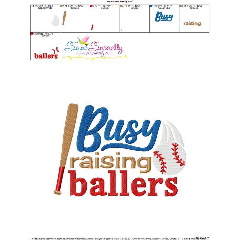 Busy Raising Baseball Ballers Lettering Embroidery Design Pattern