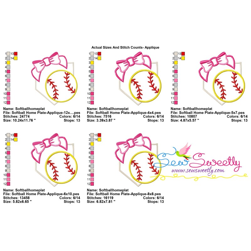 Softball Home Plate Bow Machine Embroidery Applique Design Pattern For Softball Sports Projects.