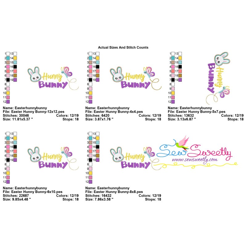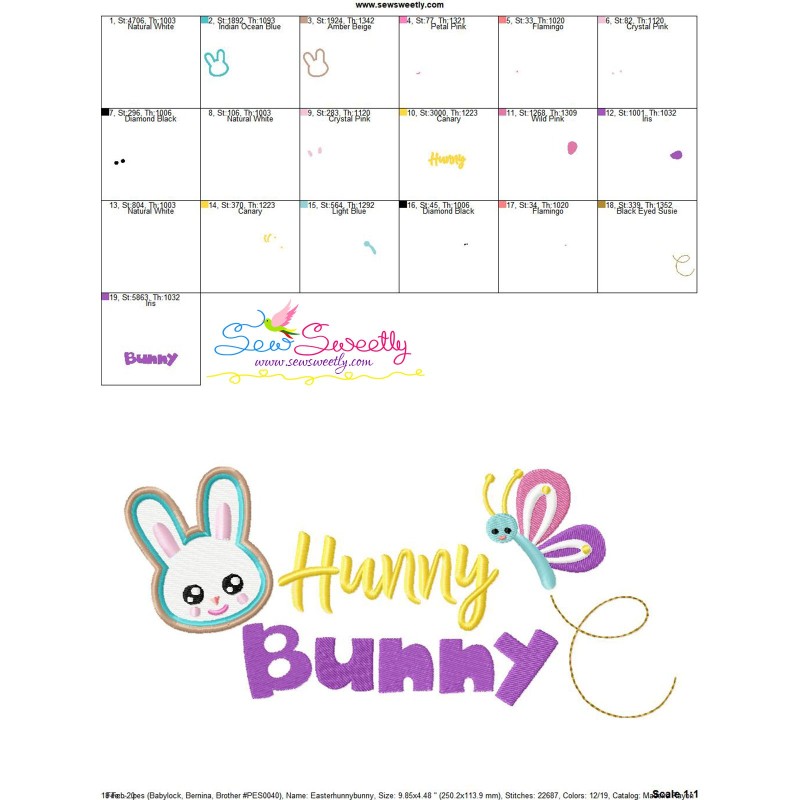 Easter Hunny Bunny Lettering Machine Embroidery Design Pattern For Easter.