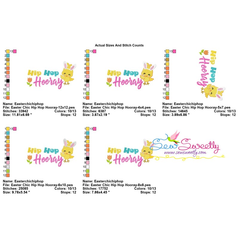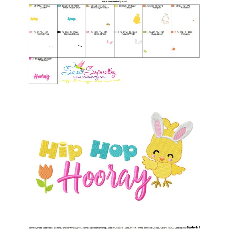 Easter Chick Hip Hop Hooray Lettering Machine Embroidery Design Pattern For Easter.