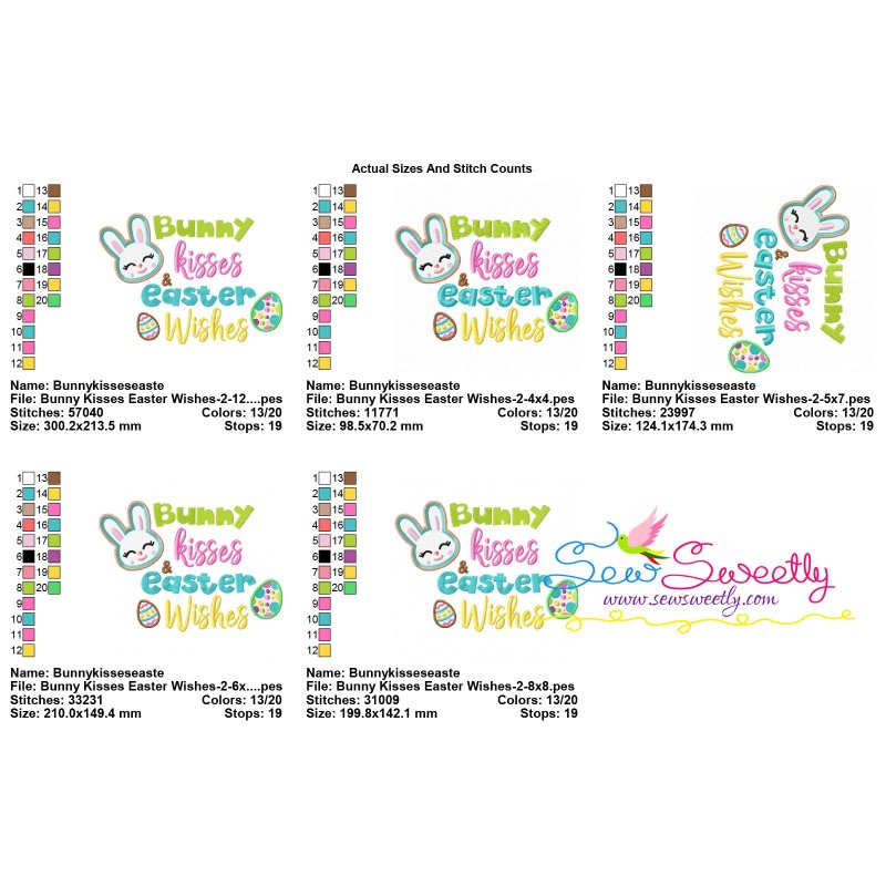 Bunny Kisses Easter Wishes-2 Easter Lettering Machine Embroidery Design Pattern For Easter.