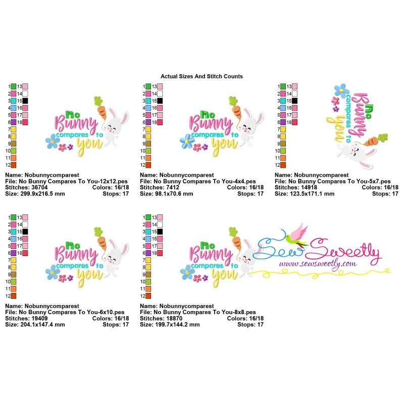 No Bunny Compares To You Easter Lettering Machine Embroidery Design Pattern For Easter.