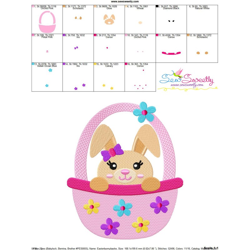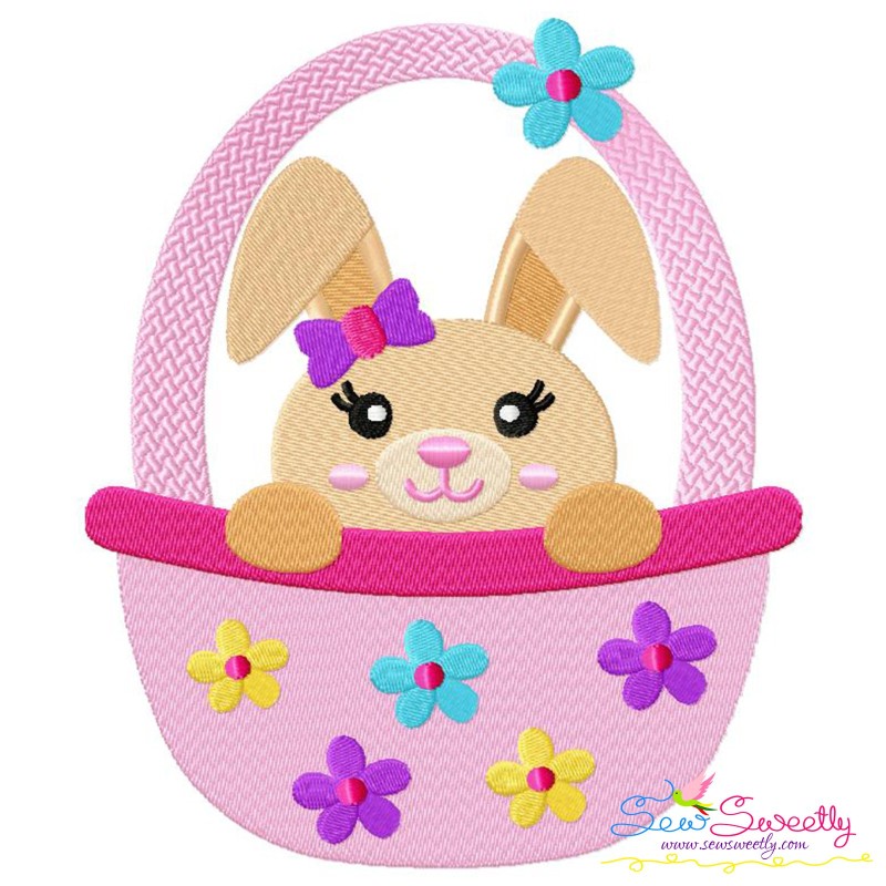 Easter Bunny Girl Basket Machine Embroidery Design Pattern For Easter.