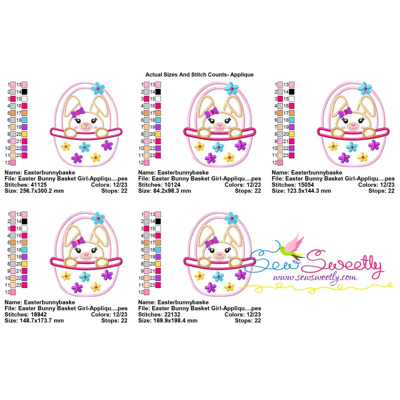 Easter Bunny Girl Basket Machine Embroidery Applique Design Pattern For Easter.