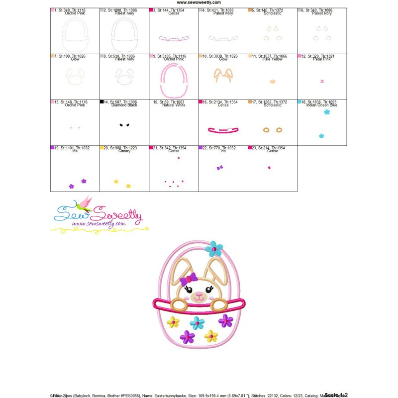 Easter Bunny Girl Basket Applique Design Pattern-3