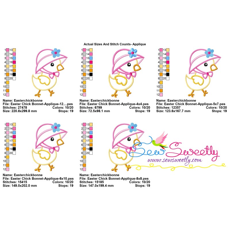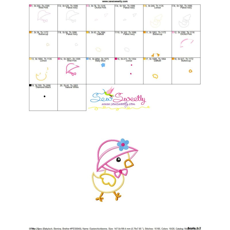Easter Chick Bonnet Applique Embroidery Design Pattern For Easter.