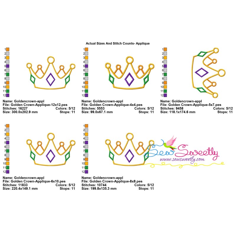 Golden Crown Machine Embroidery Applique Design Pattern.