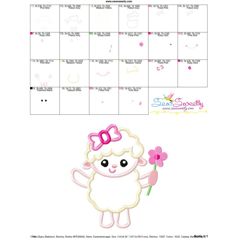 Easter Lamb Applique Embroidery Design Pattern For Easter.