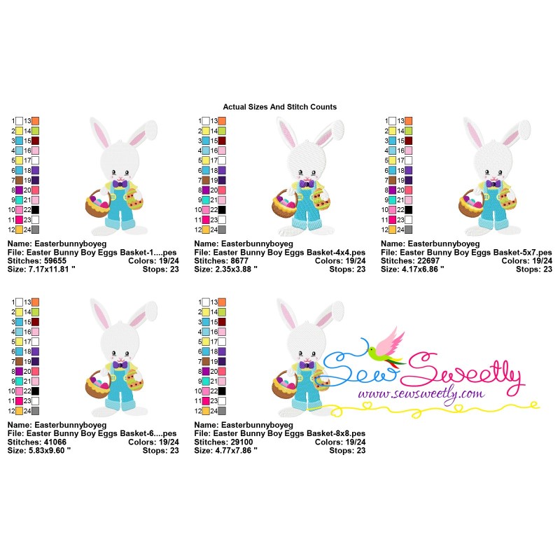 Easter Bunny Boy Eggs Basket Machine Embroidery Design Pattern For Easter.