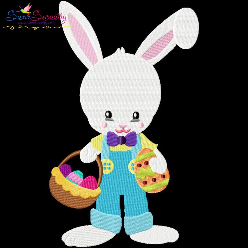 Easter Bunny Boy Eggs Basket Embroidery Design Pattern-1