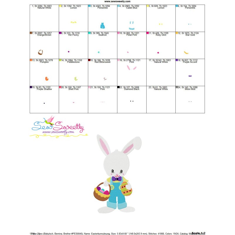 Easter Bunny Boy Eggs Basket Embroidery Design Pattern