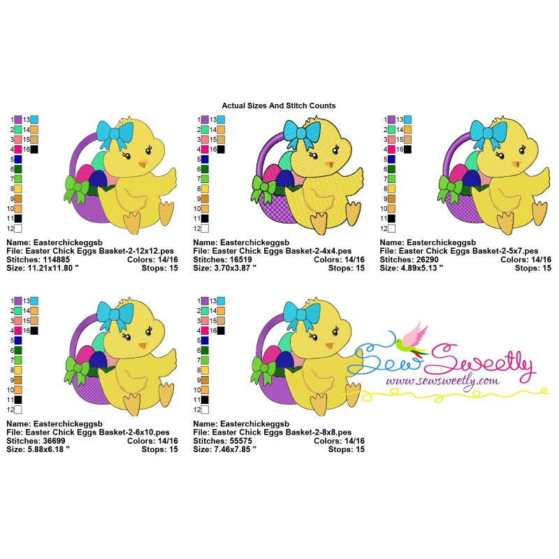 Easter Chick Eggs Basket-2 Machine Embroidery Design Pattern For Easter.