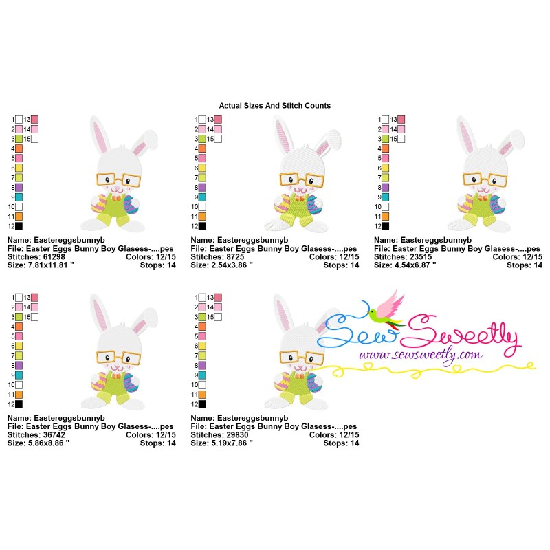 Easter Eggs Bunny Boy Glasses Machine Embroidery Design Pattern For Easter.