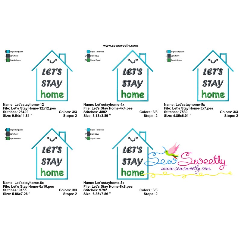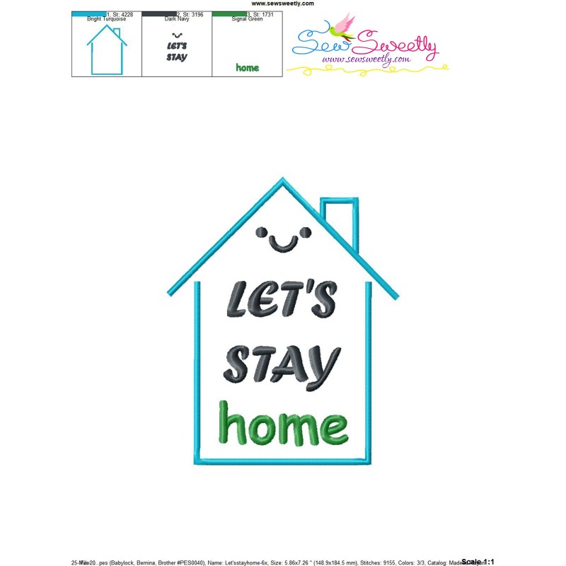 Free Let's Stay Home Lettering Machine Embroidery Design Pattern.