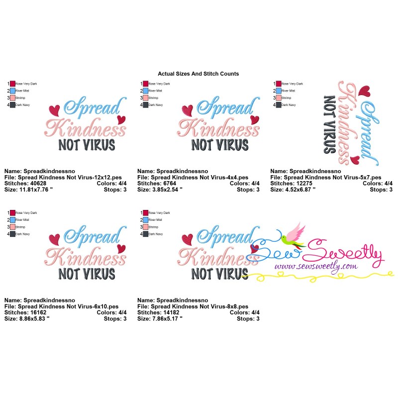 Free Spread Kindness Not Corona Virus Lettering Machine Embroidery Design Pattern.