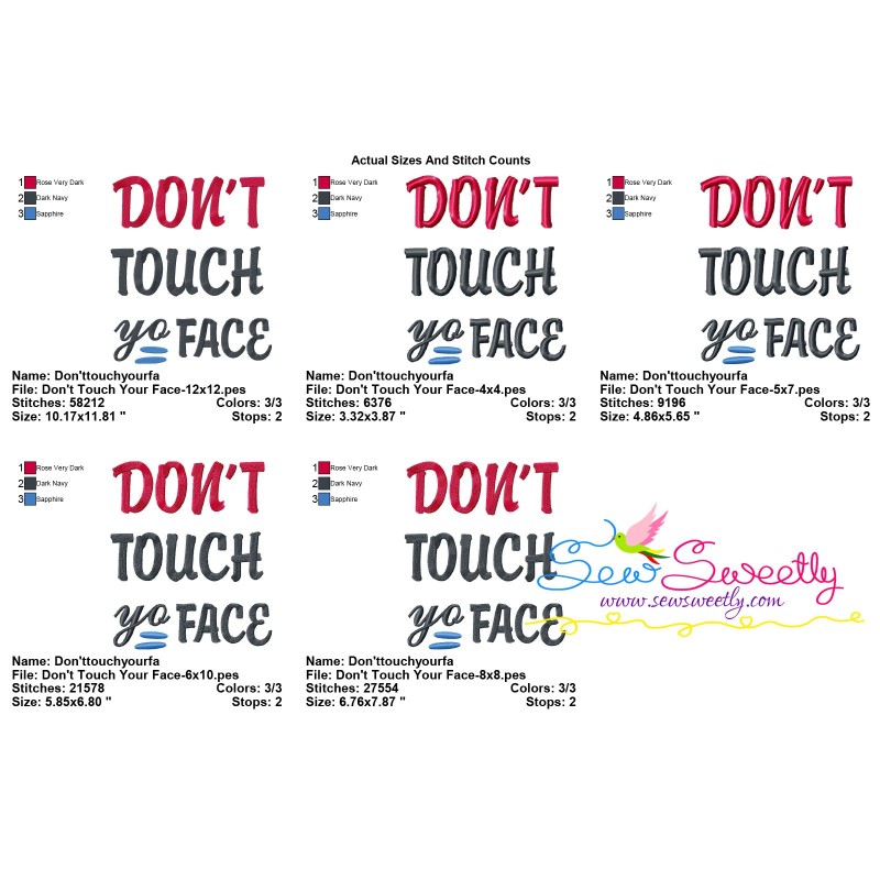 Free Don't Touch Your Face Corona Virus Lettering Machine Embroidery Design Pattern.
