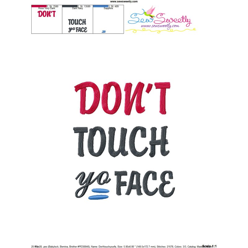 Free Don't Touch Your Face Corona Virus Lettering Embroidery Design Pattern