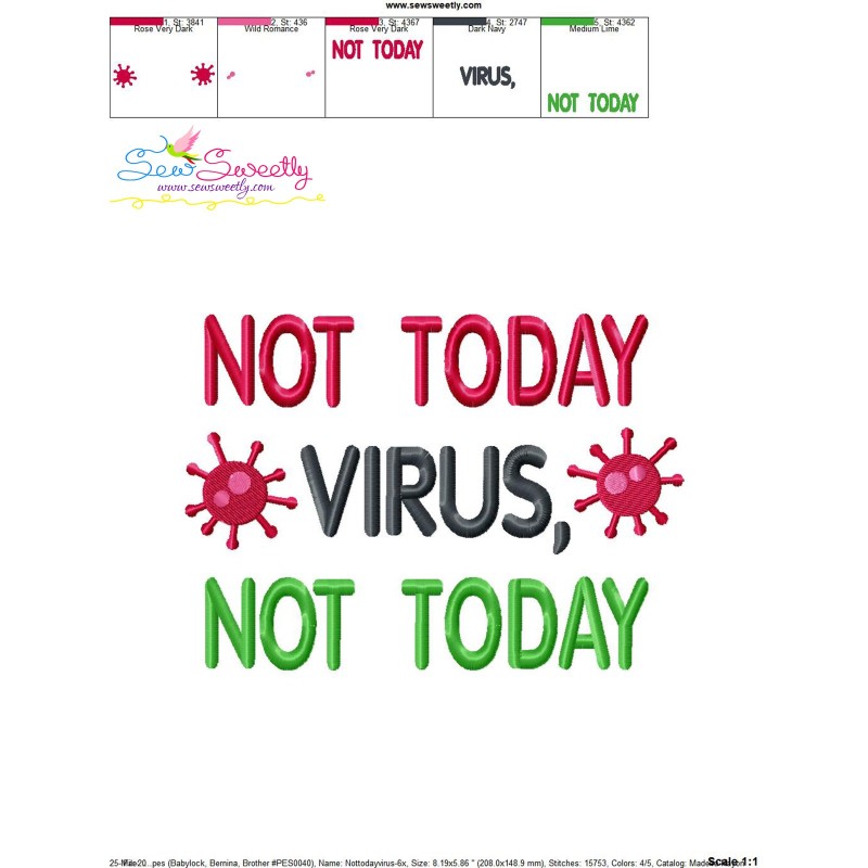Free Not Today Corona Virus Lettering Machine Embroidery Design Pattern.