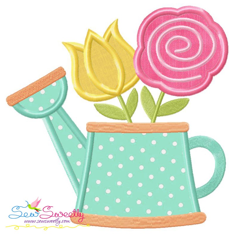 Watering Can Flowers-2 Applique Embroidery Design Pattern For Spring Season Projects.