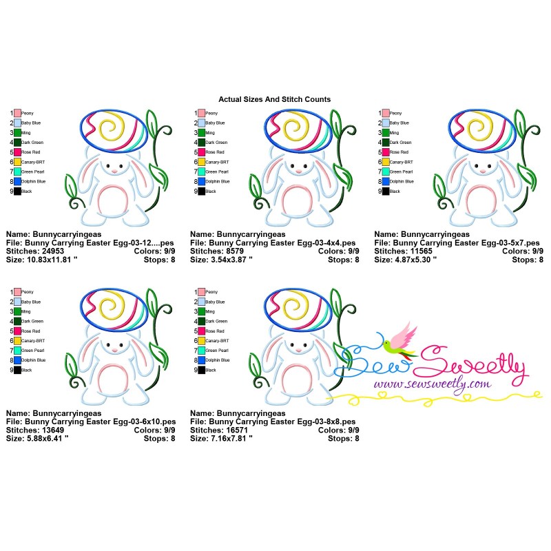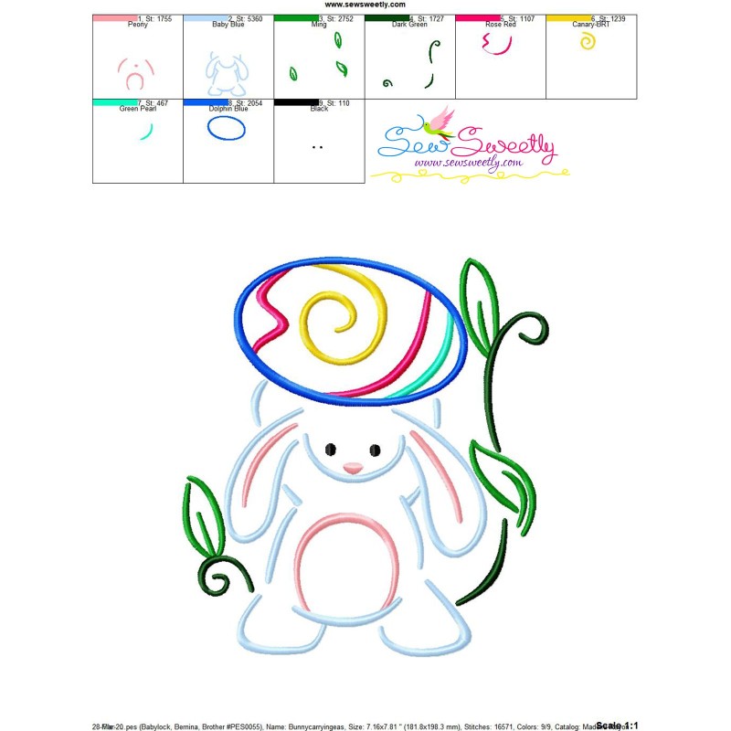 Bunny Carrying Easter Egg-03 Machine Embroidery Design Pattern For Easter.